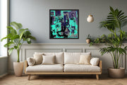 Livré avec un encadrement en Caisse américaine en aluminium noir et un système d'accrochage mural.