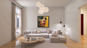 Livré avec un encadrement en Caisse américaine en aluminium noir et un système d'accrochage mural.