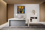 Livré avec un encadrement en Caisse américaine en aluminium noir et un système d'accrochage mural.
