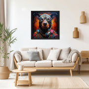 Livré avec un encadrement en Caisse américaine en aluminium noir et un système d'accrochage mural.