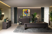 Livré avec un encadrement en Caisse américaine en aluminium noir et un système d'accrochage mural.