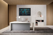 Livré avec un encadrement en Caisse américaine en aluminium noir et un système d'accrochage mural.