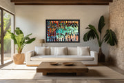 Livré avec un encadrement en Caisse américaine en aluminium noir et un système d'accrochage mural.